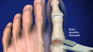 This surgical procedure is used to help relieve symptoms of hallux rigidus by removing bony growths on top of the big toe's main joint. This procedure improves joint movement and is most successful in patients with less severe arthritis.